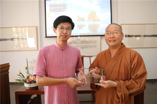 鸿山书院院长法云法师为朱人求教授颁发“鸿山书院副院长聘书”