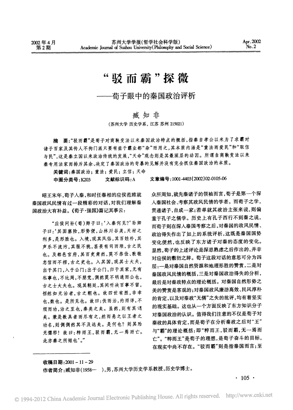 ——荀子眼中的秦国政治评析