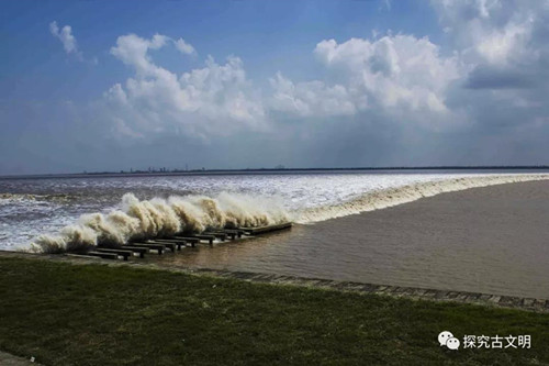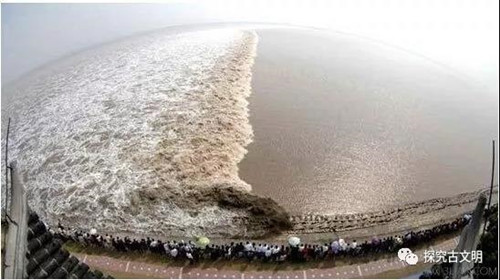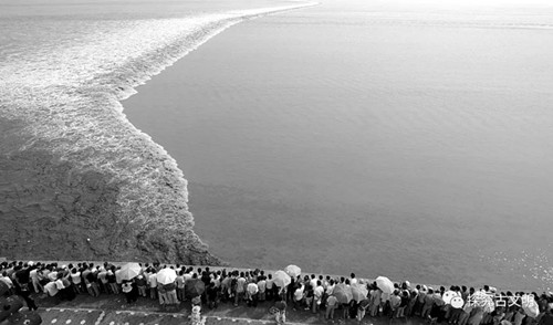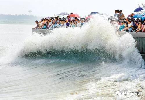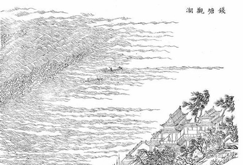 钱塘江,或称浙江,其入海之处地貌构造特殊,入海口呈喇叭形,江口大而江身小,每年农历八月,海潮最大时,海水从宽达100公里的江口涌入,受两旁渐狭的江岸约束,形成涌潮。涌潮又受江口拦门沙坎的阻截,波涛后推前阻,涨成壁立江面的一道水岭。潮头最高时达3~4米,潮差可达9米,奔腾澎湃,势无匹敌。尤其是每年农历八月十八日的潮汛最大。唐宋时期,涌潮远出海门,直扑杭州,水如悬崖,声似雷霆,震撼两岸。当此之时,钱江潮号称天下奇观。