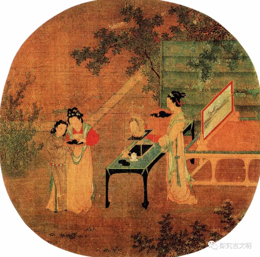 图4【宋】 王诜《绣栊晓镜图》中有富贵女子使用蔷薇水的表现。台北故宫博物院藏。