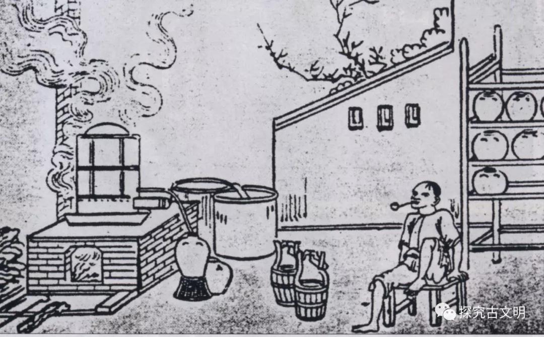 描绘清代民间酿酒蒸馏器的插图,引自《三联生活周刊》2013年38期。