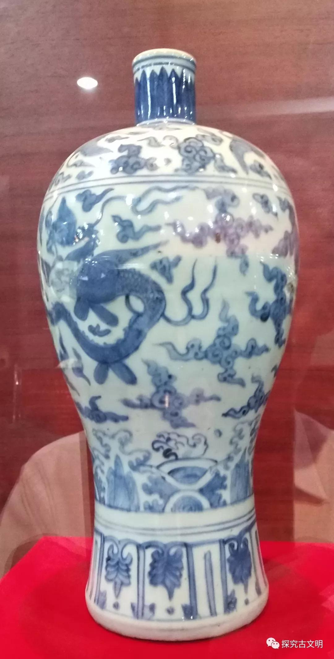 明代青花龙凤梅瓶,高31.5厘米,为嘉靖年间民窑制品,这是中国古代用梅瓶盛酒的最后余光