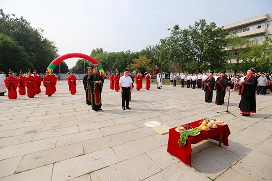 2016年9月9日,山东曲阜师范大学举行“释菜礼”,拜祭至圣先师孔子,迎接第32个教师节。