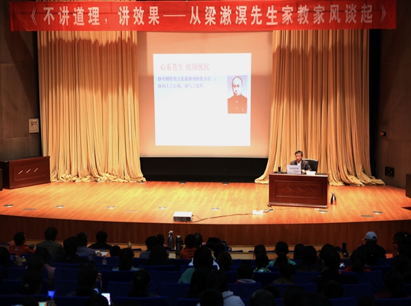 梁钦元先生在讲座上就如何对待孩子的梦想以及如何正确启发和引导孩子等问题进行了深入浅出的讲解,他以父辈及自己的亲身经历向大家展现了一部优良的家风史。他强调孩子在成长过程中向上之心的重要性,要求家长不要只讲道理,要甘于被动,正确引导和耐心启发孩子对待生活的热情,培养孩子主动学习的能力,形成有主见、敢担当的人格。