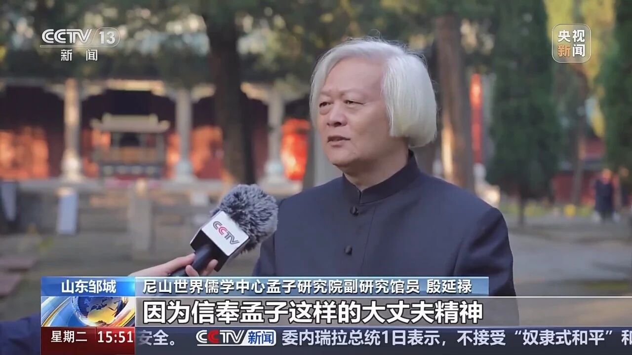 孟子研究院副研究馆员殷延禄:因为信奉孟子这样的大丈夫精神、浩然之气,所以他就有了一种强烈的家国担当,要修身齐家治国平天下,为天地立心,为生民立命,对他这样思想的推崇,我们传统的文化才有了不屈的脊梁,才能仍然强健不息。