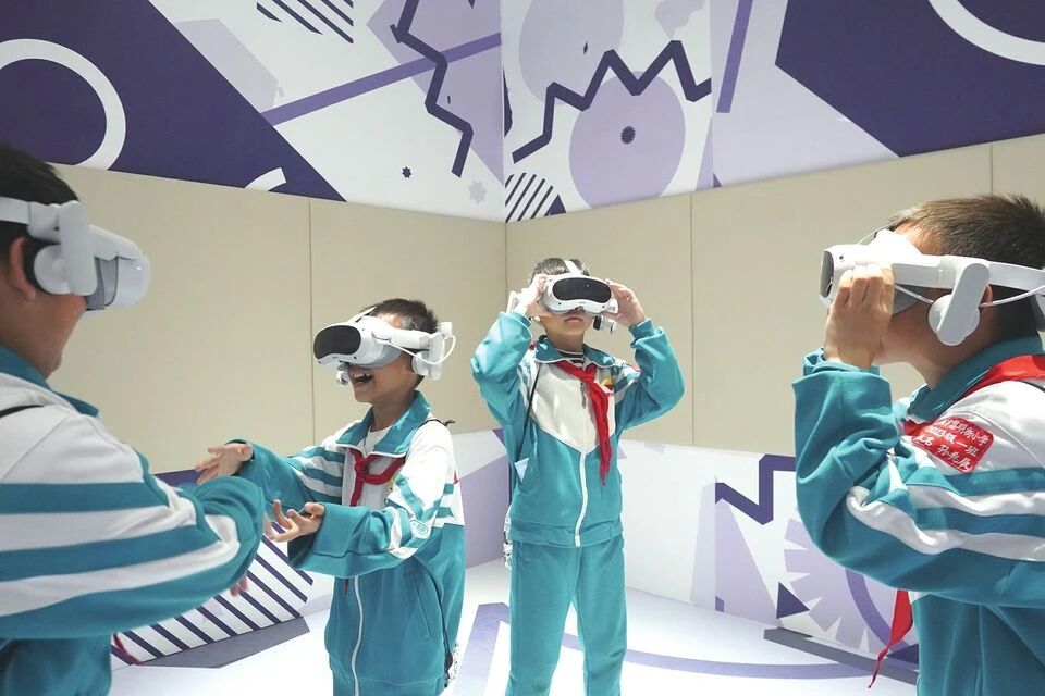 学生戴上VR眼镜进入虚拟时空,感受运河文化魅力。
