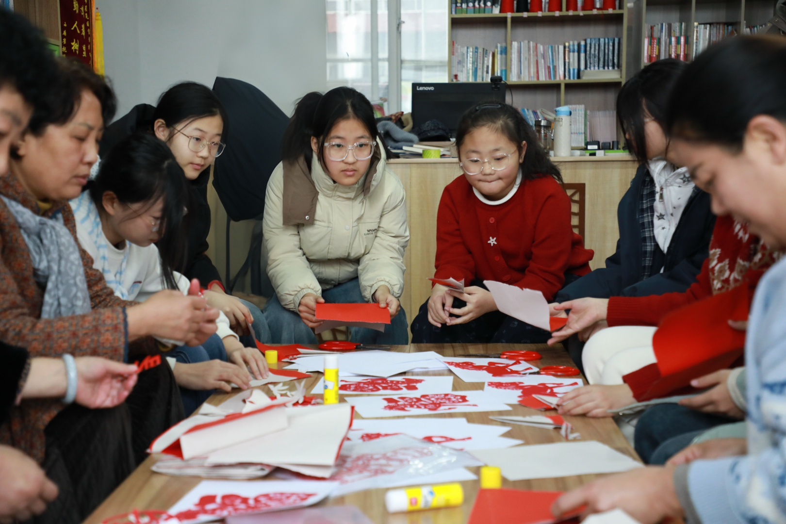 “我是陪孙女来的,听说今天小年有活动就赶紧来瞧瞧。”这位家住隔壁社区的李阿姨指着一个正在剪纸的孩子说,四周的老街坊都慕名来这儿赶“文化集”。