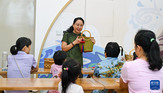 10月12日,不少家庭来到位于海口的海南省文化馆“海文学堂”,在非遗传承人指导下体验东山草编技艺,通过完成传统手工艺作品学习非遗知识、理解文化内涵,在互动中感受传统文化魅力。东山草编技艺是海南省海口市秀英区东山镇的传统手工技艺,入选第六批海南省级非物质文化遗产名录。