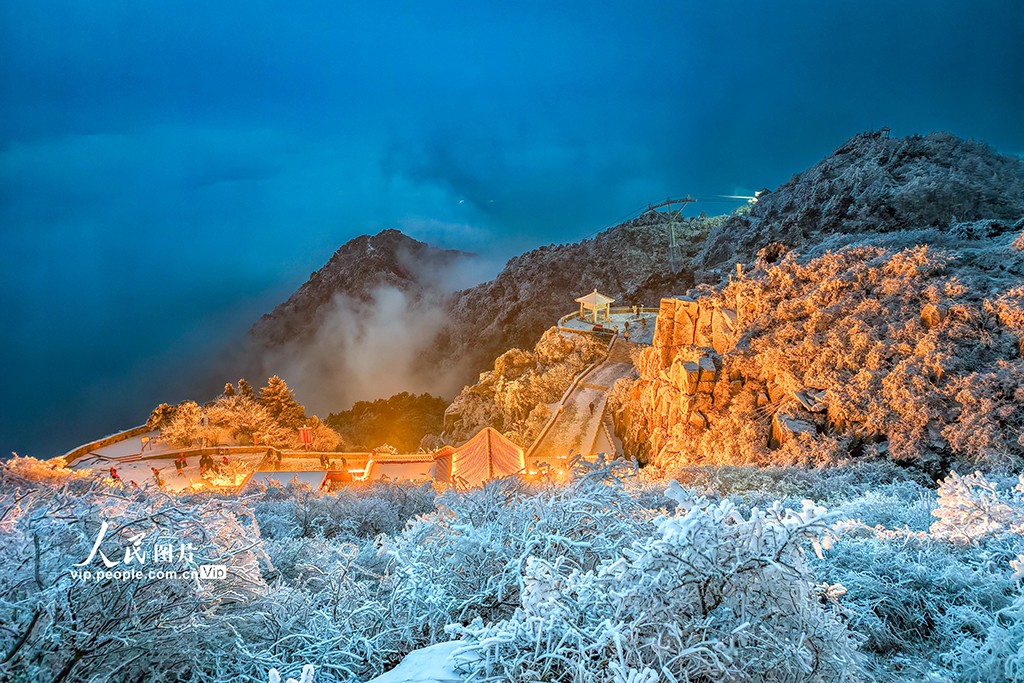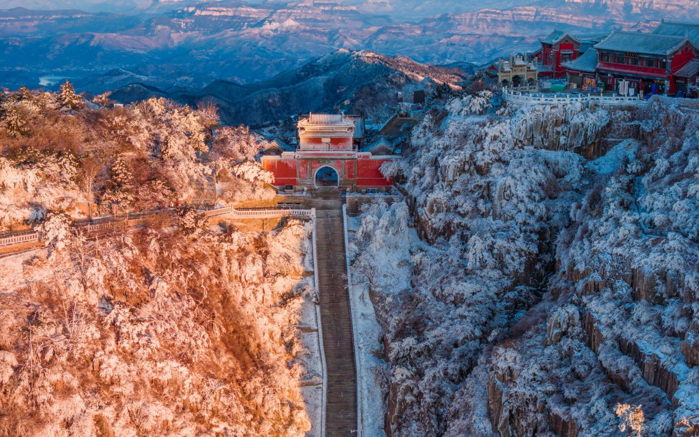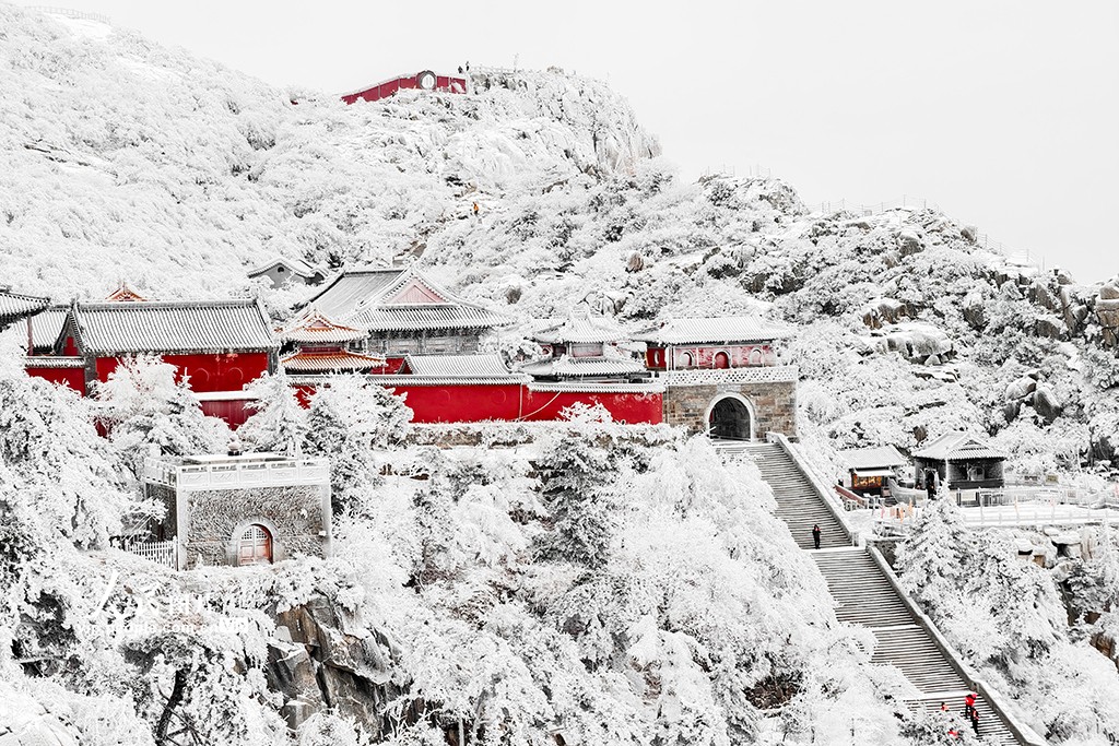 2026年1月20日,山东泰安,雪落岱宗之巅,七千级石阶披上银装,五岳之首换作人间仙境,如诗如画。陈爱国摄。