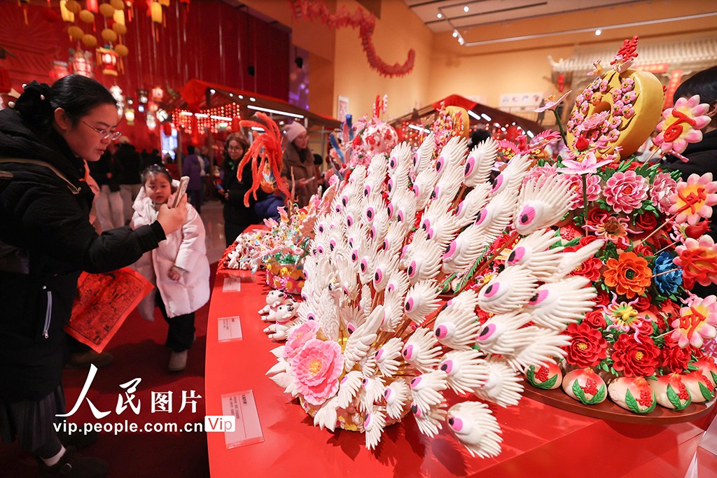 1月20日,“过年——丙午春节系列主题展”在中国非物质文化遗产馆开幕。展览围绕春节历法、生肖文化、饮食传统、灯彩民俗等主题,汇集全国百余项非物质文化遗产代表性项目,通过多层次、立体化的展陈,呈现丰富的过年场景,吸引众多北京市民及游客前来参观体验。陈晓根摄