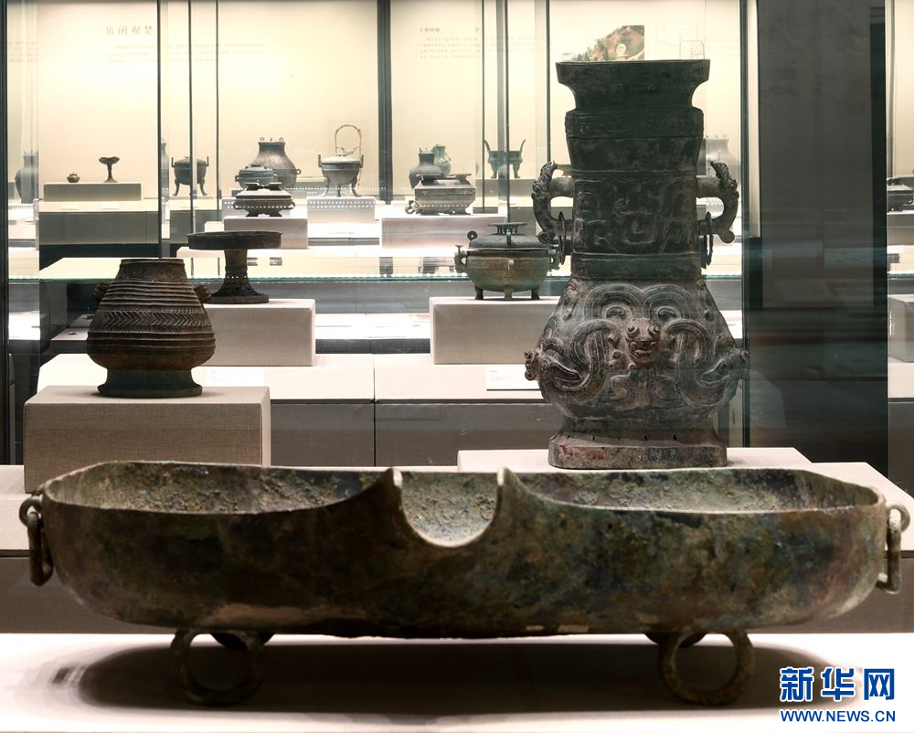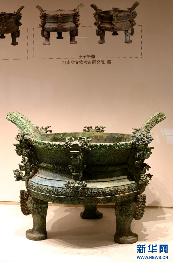 春秋时期的“王子午鼎”亮相本次展览。新华网发(侯新建 摄)