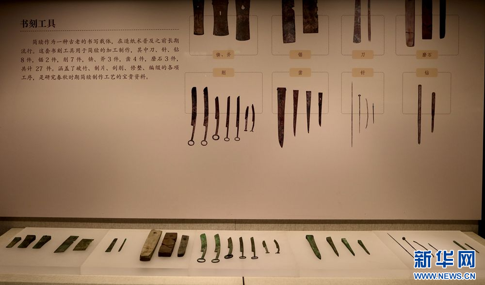 春秋时期的书刻工具展示。新华网发(侯新建 摄)