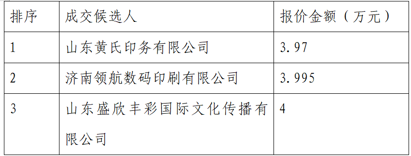 确定排名第一的成交候选人 山东黄氏印务有限公司 为成交供应商。