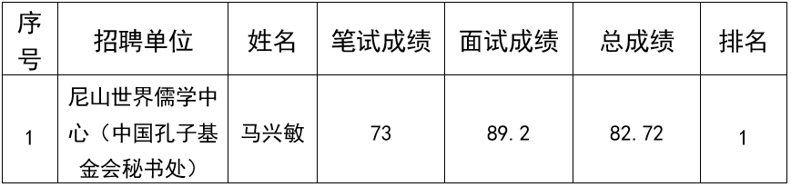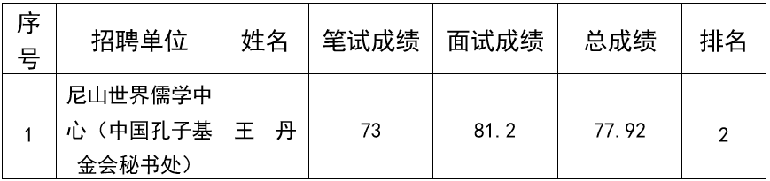 根据《2026年度省属事业单位公开招聘工作实施方案》(鲁人社发〔2025〕12号)、《尼山世界儒学中心(中国孔子基金会秘书处)及所属事业单位2026年公开招聘人员公告》要求,2026年尼山世界儒学中心(中国孔子基金会秘书处)信息技术岗位面试工作已经结束。现将相关信息公示如下: