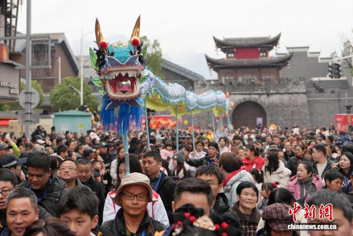 - 古城を彩る元宵節の板凳竜 中国・安徽省休寧県