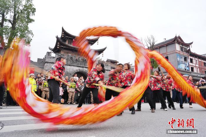 이날 시민들은 거리에서 용춤을 추며 축제 분위기를 더했다. [중신사 양화펑 기자 촬영]