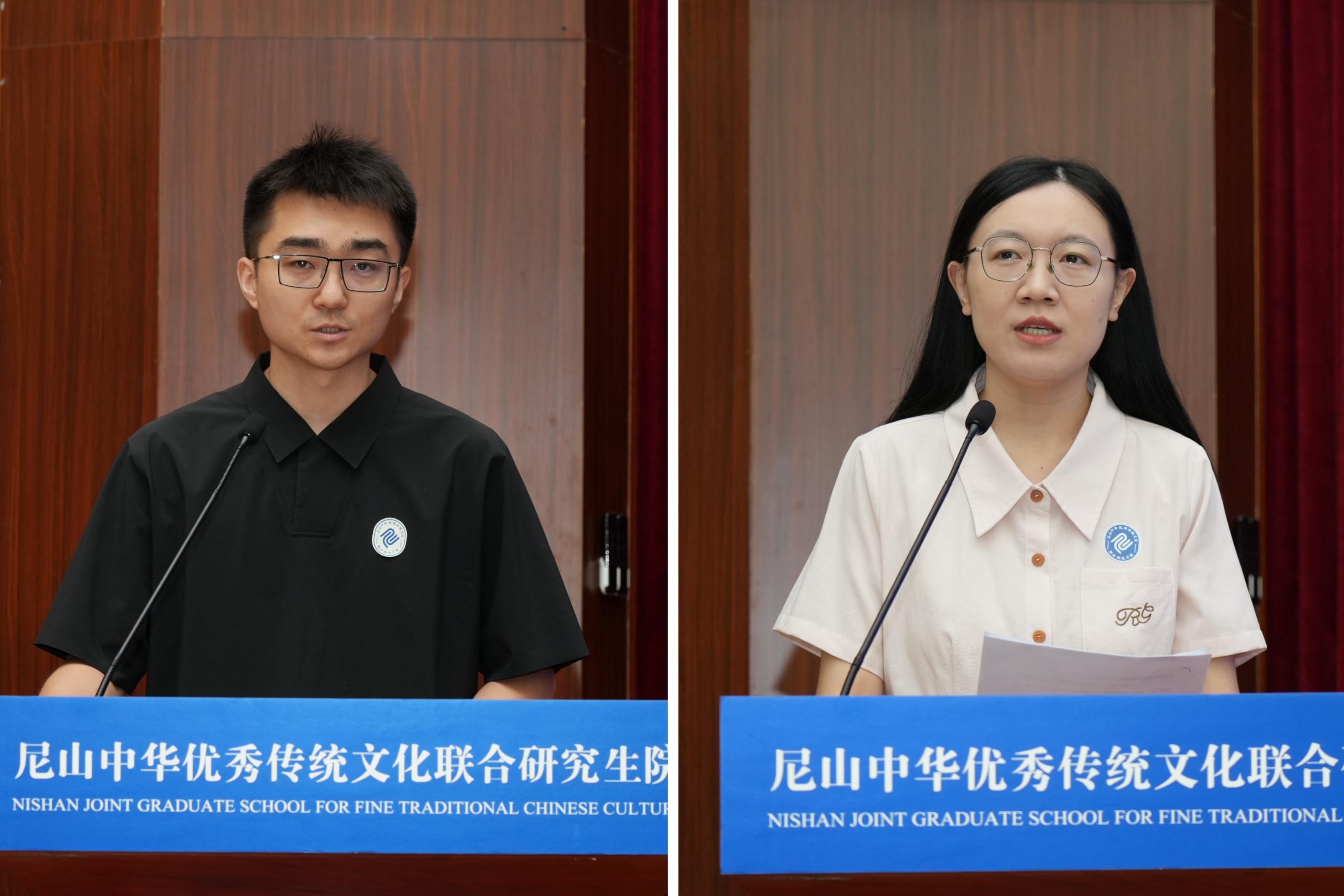 来自中国人民大学的赵政扬、山东大学的许冬阳分别作为硕士毕业生代表、博士毕业生代表发言。表示,中华优秀传统文化的创造性转化和创新性发展,需要一代又一代人躬身践履、主动担当。作为新时代的青年,我们不仅是中华文化的受益者与见证者,更应成为薪火相传的守护者与开拓者,这既是时代赋予青年的历史使命,更是每个炎黄子孙血脉相连的责任担当。