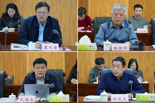 山东省政府参事、山东省委外办原主任、《孔子研究》编委蔡先金,山东大学儒学高等研究院特聘教授、《孔子研究》主编杨朝明,孔子研究院党委副书记、院长、研究员、《孔子研究》副主编孔德立,山东大学儒学高等研究院副院长、教授、《孔子研究》执行副主编徐庆文出席会议。