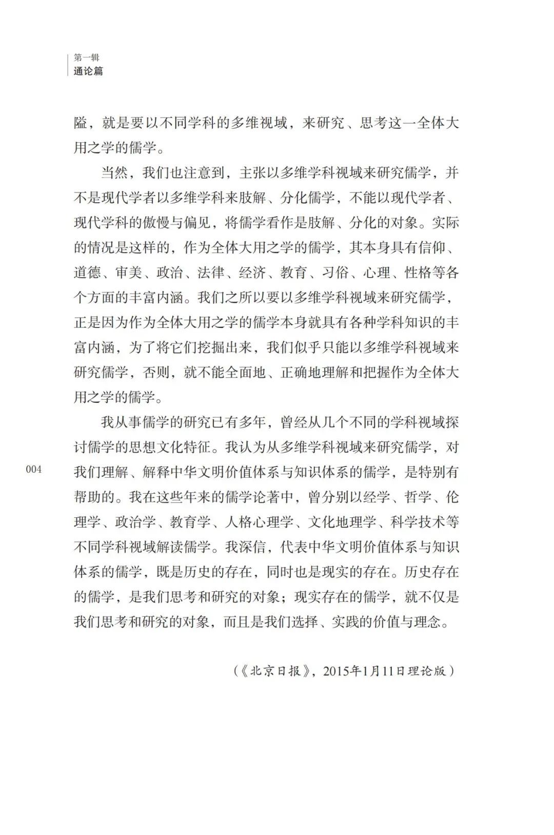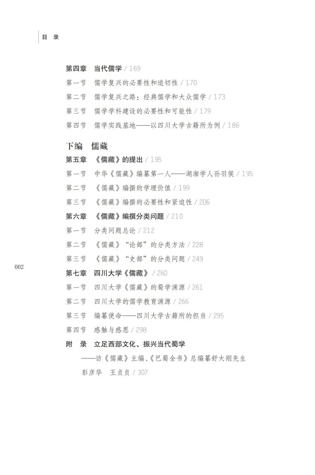 本册上编主要谈“四型”“八期”的儒学源流史,重“德”贵礼的儒家教化,“君子”“淑女”等理想人格,以及当代“儒学”学科建设以及“经典儒学”和“大众儒学”的创新构想。下编重点谈儒学文献的诞生、发展和演变,对当代《儒藏》编纂的川大实践等进行了系统阐述。本书在儒学历史、内涵及其现代转化,儒学文献的面貌、类型以及现代创新研究等方面具有重要的学术价值。