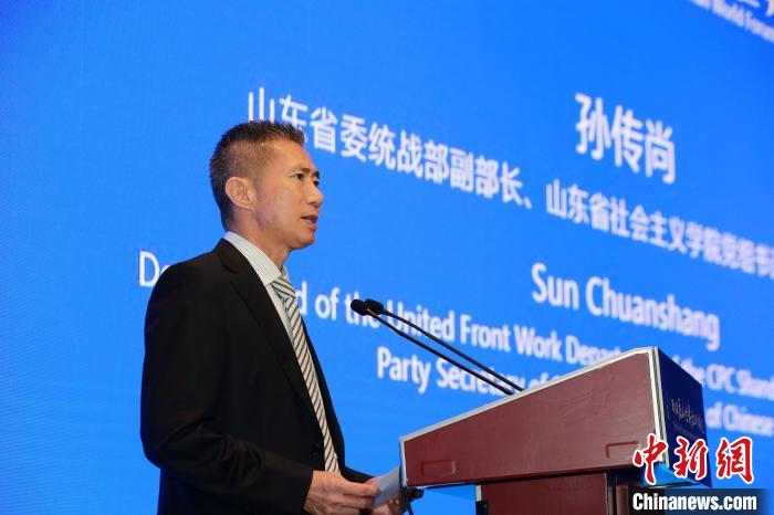山东省委统战部副部长,山东省社会主义学院党组书记、第一副院长孙传尚致辞。梁犇 摄