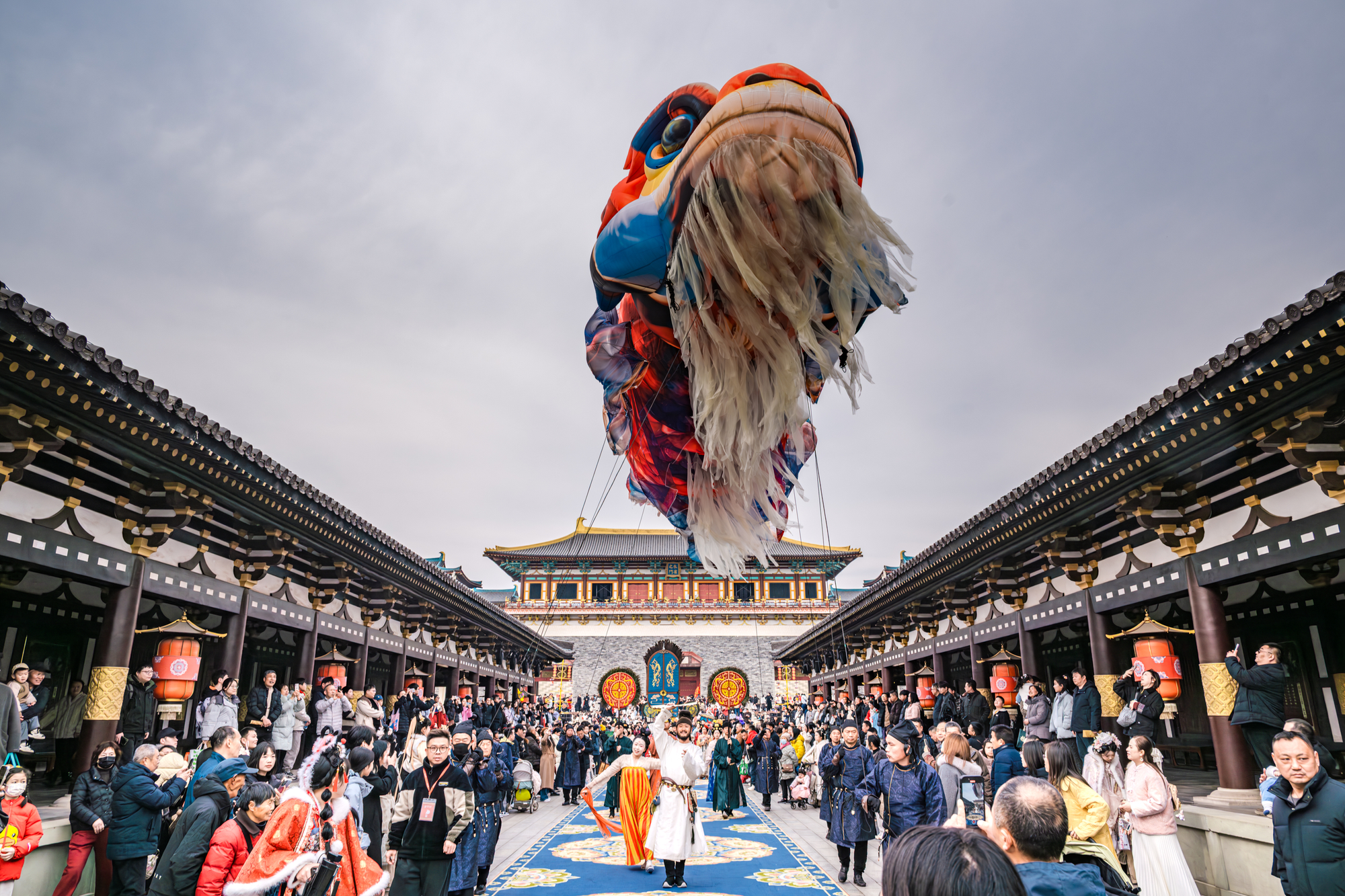 唐城景区总经理王亮介绍,春节期间景区每天上演200余场演出,其中半数以上为非遗类节目,“我们希望通过高密度的活态展演,让非遗真正‘活’在游客眼前。”