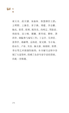 ?论 语 束天昊、高天健、朱振秋、鲁慧担任主撰; 王明朋、王新莹、朱宁燕、刘建、李金鹏、 杨光、张勇、张博、陈阳光、尚树志、周茹茹、 房政伟、屈士峰、郭耀、黄秀韬、曹帅、龚 昌华、韩振参与编写工作;于志学、吴泽浩、 张仲亭、韩新维、岳海波、梁文博、韦辛夷、 徐永生、卢冰、吴磊、杨文森、杨晓刚、张博、 李岩等艺术家创作插图;本书编写过程中参 阅了大量资料,得到了众多专家学者的帮助, 在此一并致谢。 276