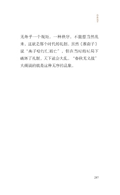 公 孙 丑 下 无外乎一个规矩,一种秩序,不能想当然乱 来,这就是那个时代的礼制。虽然《淮南子》 说“燕子哙行仁而亡”,但在当时的时局下 破坏了礼制,天下就会大乱。“春秋无义战” 大概说的就是这种无序的乱象。 297