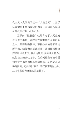 告 子 下 代表天下人发出了这一“大哉之问”。孟子 立即做出了相当肯定的回答,并指出人成为 圣贤不是不能,而是不为。 孟子的“性善论”就是肯定了人天生就 有向善的本性,这种本性就潜伏在人的内心 之中,只要加强修养,不被纷杂的外部事物 所困扰,就能做到至诚至善,进而做到修身 齐家治国平天下,就会达到尧、舜的圣人境界。 但假如人的天性之善,在后天社会环境中受 到利益的诱惑而任其私欲膨胀,必然会走向 善的反面,走向不仁不义,不仅做不到尧、舜, 反而容易成为夏桀式的暴君了。 257