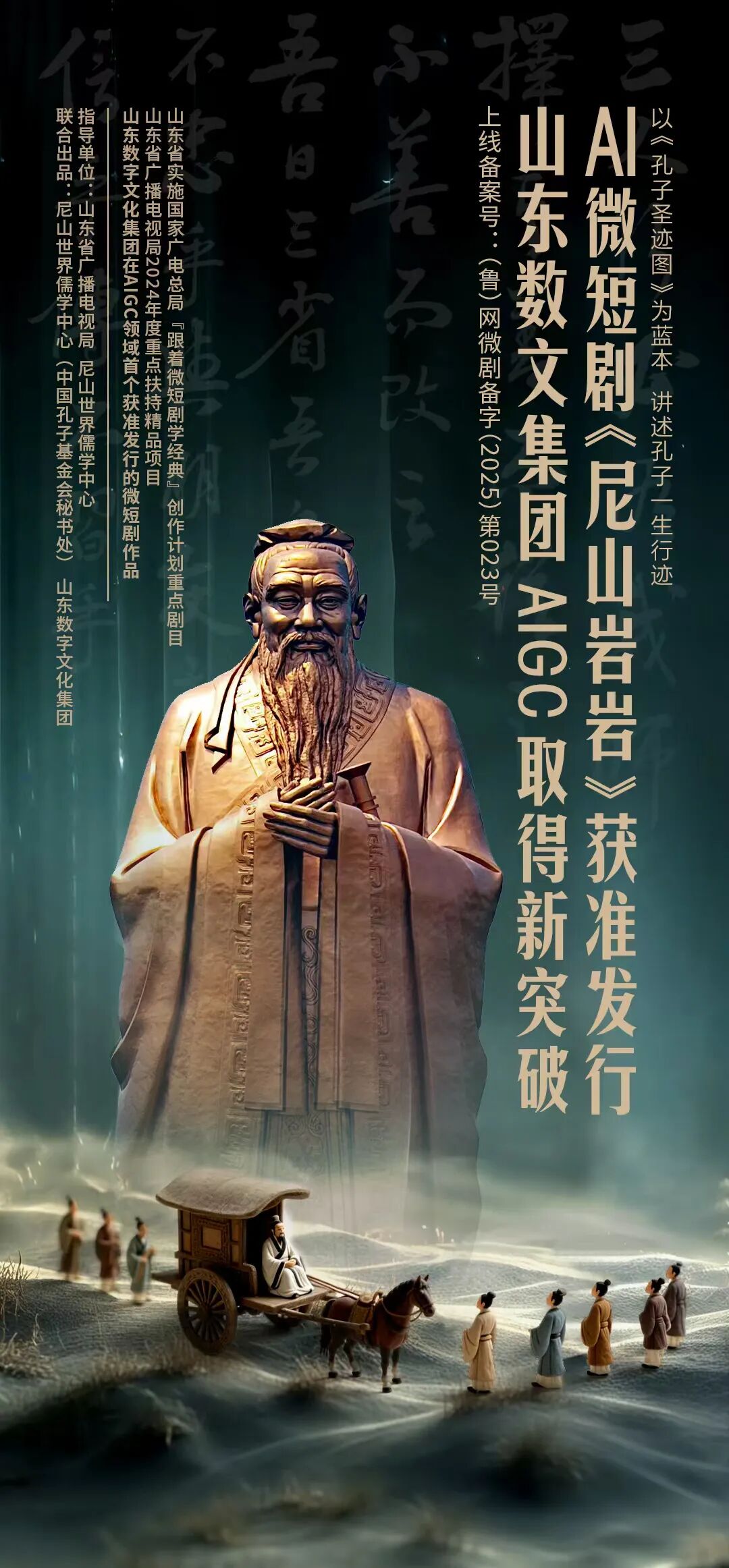On December 30, 2025, the AI short drama "Glorious Nishan " passed the online review by the Radio and Television Administration of Shandong Province and was approved for distribution. The drama was guided by the Radio and Television Administration of Shandong Province and Nishan World Centerfor ConfucianStudies, and jointly created and produced by Nishan World Center for Confucian Studies (Secretariatof China Confucius Foundation) and Shandong Digital Culture Group.