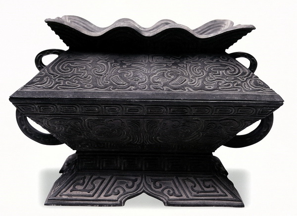 A sacrificial utensil in the Temple of Confucius,bronze,used as a grain receptacle,inscribed with “Made in the 8th year of Emperor Yongzheng’s reign of the Qing Dynasty”(1730AD) in Kai style on the interior surface of the lid