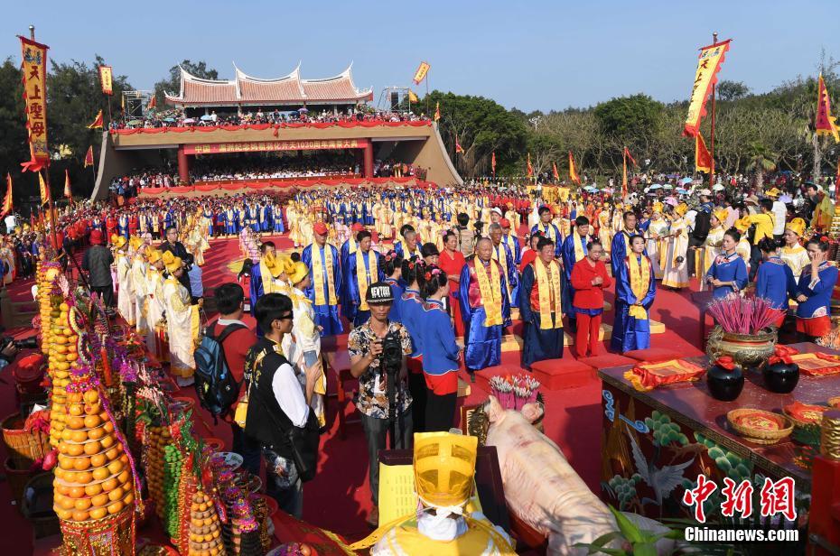 当天下午,湄洲祖庙于湄洲岛下山村深澳底设海神祭坛,依循古制以三献九叩、放生之礼海祭妈祖。马来西亚麻坡天后宫,印度尼西亚林氏宗亲会,台北北港朝天宫、新港奉天宫、台湾圣母三妈协会及福建闽南地区180家宫庙共襄盛举,数万名海内外妈祖信众共同观礼。