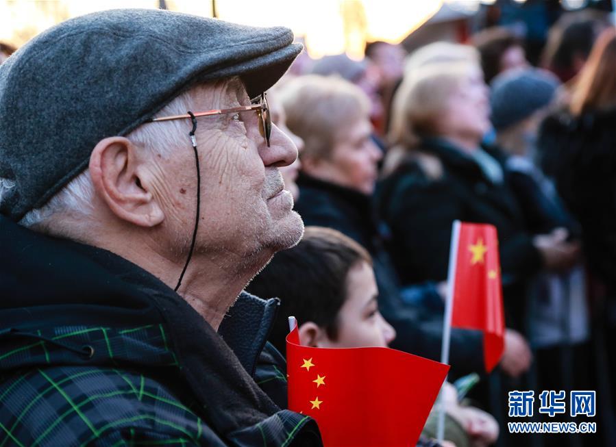 2月22日,在塞尔维亚首都贝尔格莱德举行的一场声援中国抗击新冠肺炎疫情的音乐会上,当地民众手持中国国旗表示对中国的支持。新华社记者 石中玉 摄