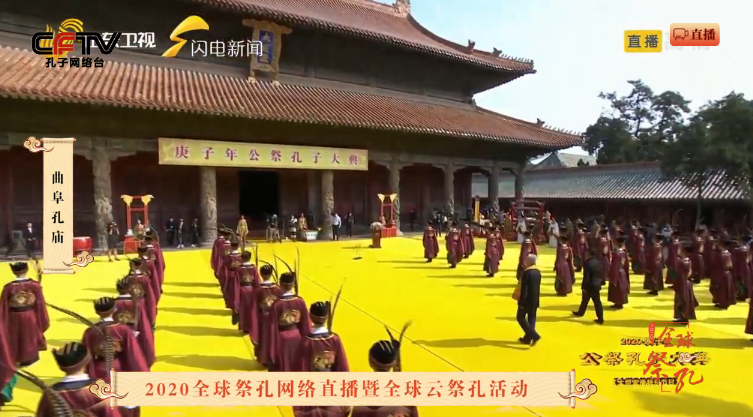 “2020全球祭孔网络直播”在曲阜孔庙大成殿前实时播放