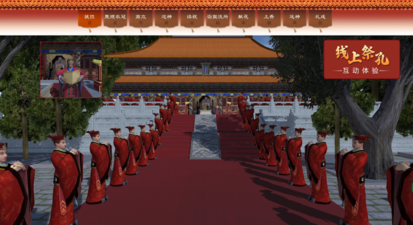 在新时代,中华优秀传统文化需要进行创造性转化和创新性发展,为了让更多的人了解祭孔的形式和内涵,“2020全球祭孔网络直播”前夕,中国孔子网对“线上祭孔”平台进行了优化升级,采用虚拟现实、短视频、H5互动等多种技术手段,重现古代祭孔盛况。通过互动点播在虚拟现实中完成祭孔的全部十个流程,感受一场规范隆重、庄严肃穆的仪式,以表达对孔子的感念与尊崇。