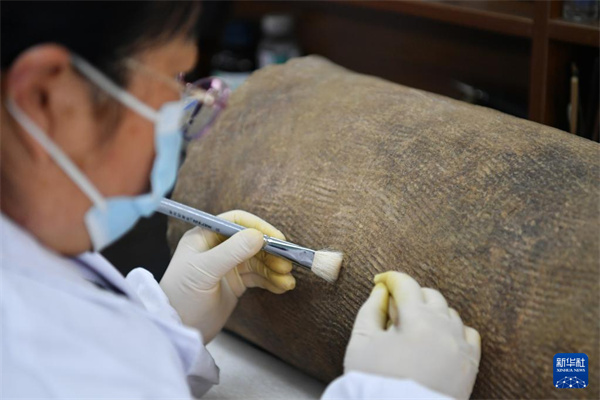 12月16日,工作人员对江村大墓出土的文物进行清理 张博文 摄