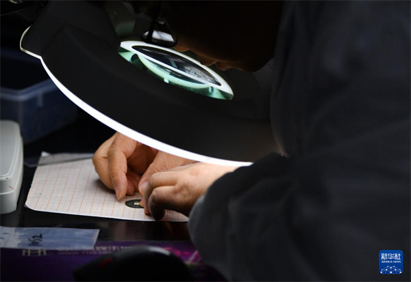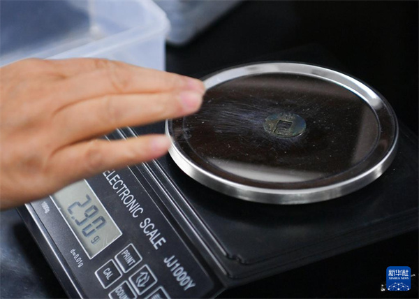 12月16日,工作人员对江村大墓出土的铜钱进行称重 张博文 摄