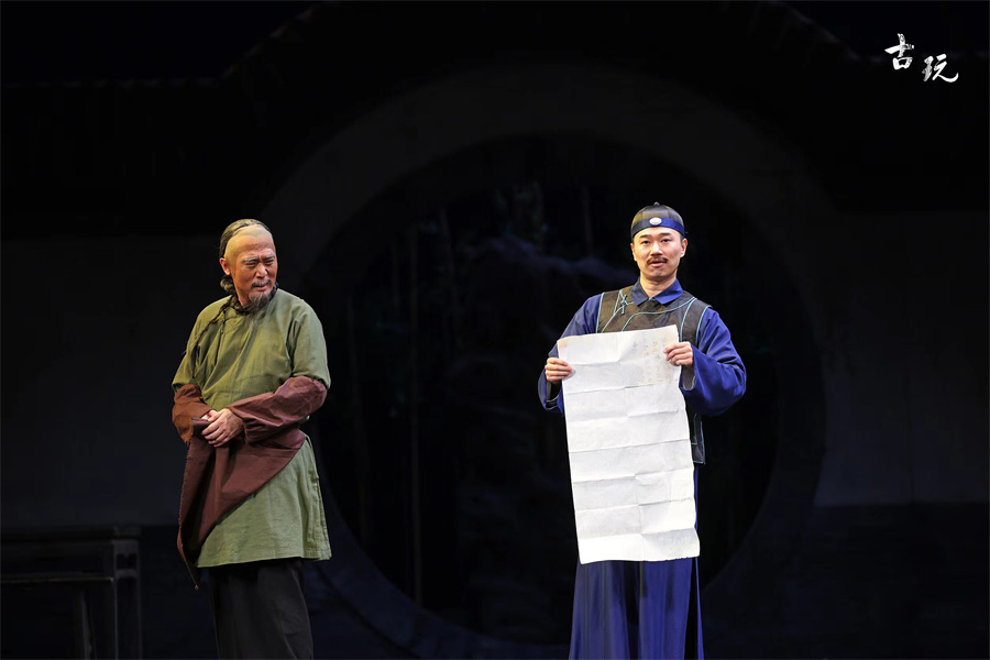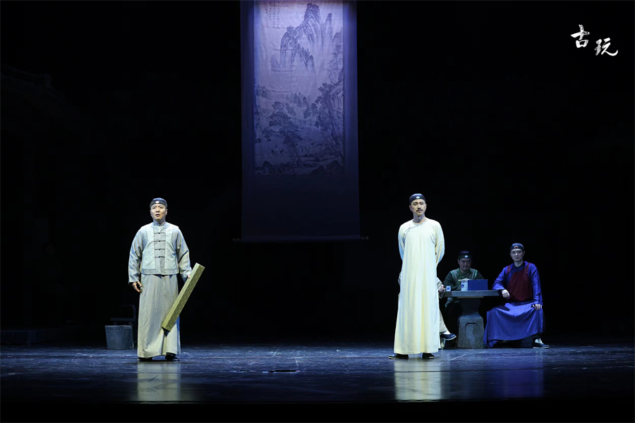 历经三年两轮演出打磨,《古玩》第三次登上舞台,给予观众的是更加生动的舞台表现。这背后靠的是积累,更是敢于“归零”的创作态度。“戏演熟了之后,别拿经验演,而是多用自己的初心去体会。”导演唐烨直言,“对于舞台表演来说,永远有新的课题。”从外部到内部,从“演”到“化”,舞台上人物塑造的准确之外,还有自己的色彩。舞台上两个掌柜的明争暗斗与惺惺相惜,与其他同行的相扶相守,与外来侵略的矛盾与冲突,这些复杂的情感不止依托于演员本人的台词准确与内心丰富,更依赖于与对手之间的交流,“演出人与人之间的关系。”也是这部戏好看的关键。