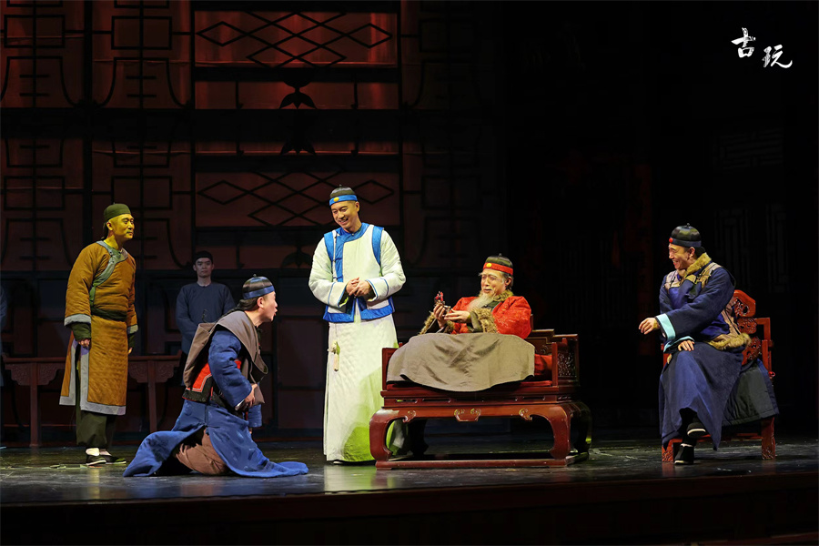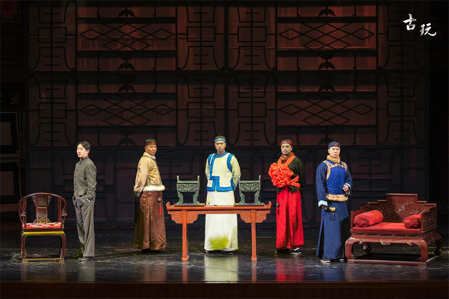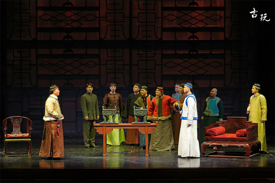 看一度创作的故事,看二度导表演的舞台呈现,看青年一代演员整体的实力表现,《古玩》给了观众多重的观演体验。“这个戏让观众看到的不只是几个人,而是一批人,一批北京人艺的年轻力量。”导演唐烨称,三年的积淀,从舞台新人到各自能去挑大梁,观众看到的是北京人艺这批青年人的舞台成长。“如果说《古玩》首演是大家集体亮相,那么之后几年就是这批演员在舞台中间的持续绽放。王雷演出了《天下第一楼》的掌柜卢孟实;荆浩、苗驰在《家》中继续挑梁分别饰演觉新和觉慧;傅迦积极参与抗疫大戏《社区居委会》,雷佳在《日出》《原野》中都饰演了主要角色……”在导演唐烨看来,舞台的不断历练让他们今天在《古玩》中的表演更加流畅和自然。王雷饰演的隆桂臣,层次丰富,演出了大时代下买卖人背后的无奈。荆浩饰演的金鹤鑫,则一改商人的传统形象,更显棱角鲜明。傅迦饰演的韩红木,雷佳饰演的秀王爷则给了人更多情感的温度。这些对人物的表现,既符合原作中人物设定,又有带有演员自身的独特理解。因为他们的出演,导演唐烨说“让观众看见北京人艺不会出现人才断层。”这也是这部作品在精彩的故事之余,带给观众最大的惊喜。