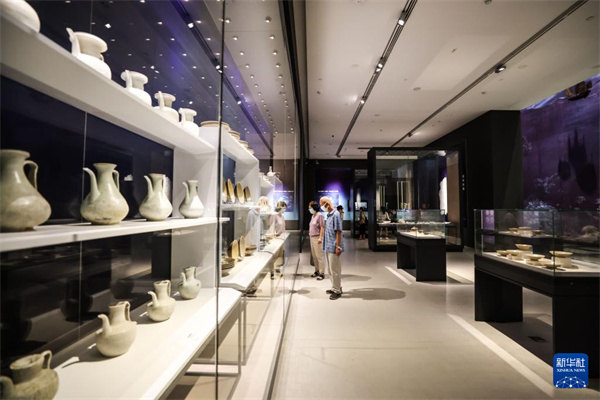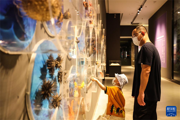 4月24日,游客在海南省博物馆里参观“南溟奇甸”南海海洋文明陈列展。