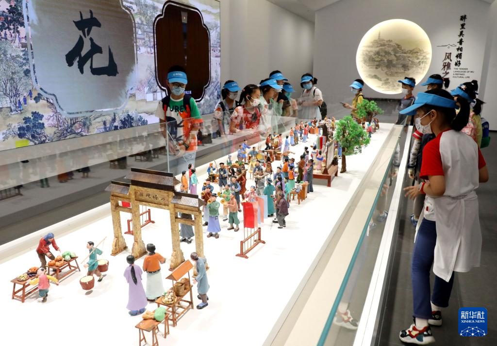 7月20日,小学生在江苏苏州虎丘景区民俗文化展厅参观。