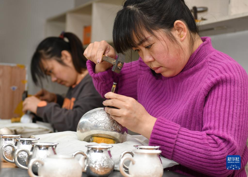 近年来,河北省沧县深入挖掘特色文化资源,积极推动传统制银技艺走规模化生产经营道路,形成集设计、生产、加工、销售于一体的特色银器产业,银器制品畅销海内外,有效带动当地群众增收。