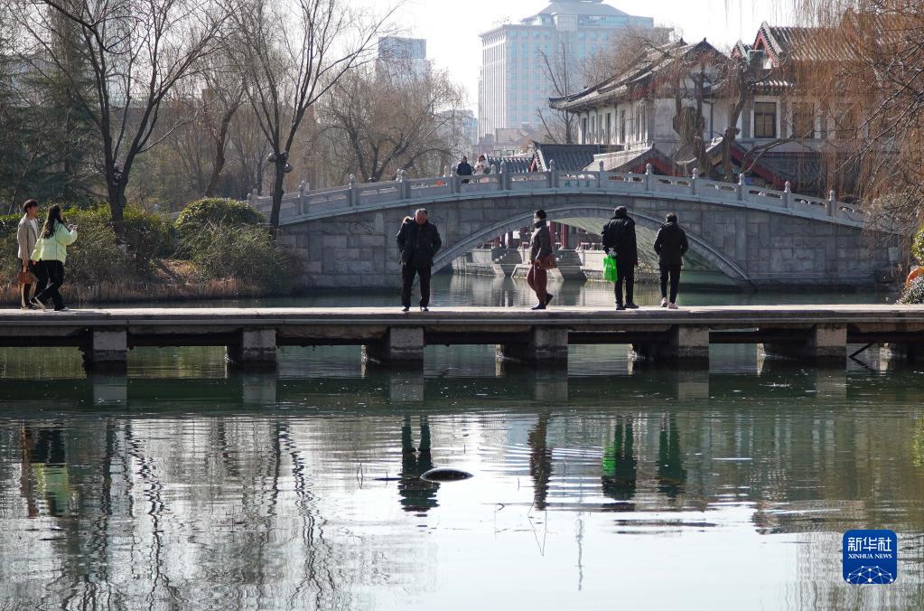 2月14日,山东省济南市天下第一泉风景区,游客在大明湖游览