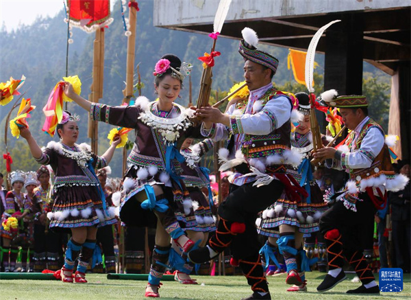 2月20日,在广西融水苗族自治县洞头镇洞头村,苗族群众在跳芦笙舞。新华社发(龙林智 摄)