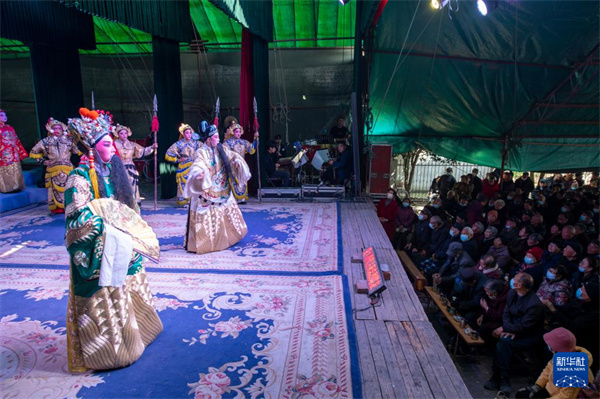 2月20日,在浙江省金华市金东区孝顺镇中街村广场,村民在观看婺剧表演。新华社发(胡肖飞 摄)