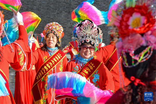 2月19日,在河北省秦皇岛市山海关区,民间艺人进行秧歌表演。新华社发(郭楠 摄)