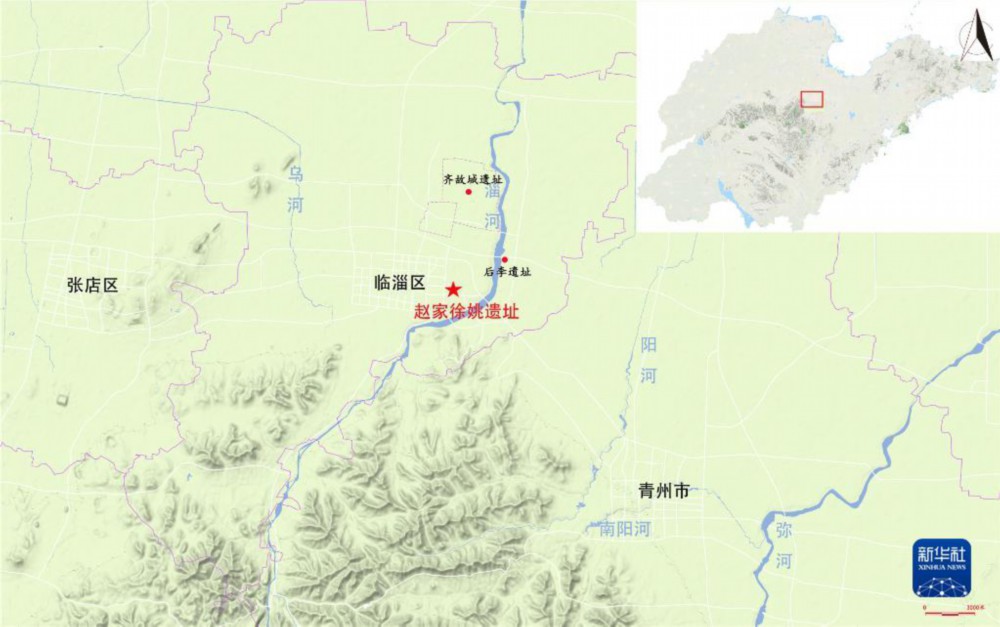 山东临淄赵家徐姚遗址位置图(资料照片)。新华社发(国家文物局供图)
