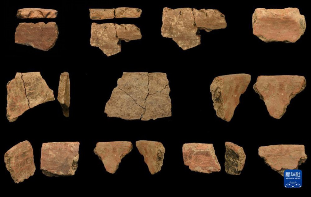 陕西旬邑西头遗址出土的陶器刻划符号与陶文(资料照片)。新华社发(国家文物局供图)