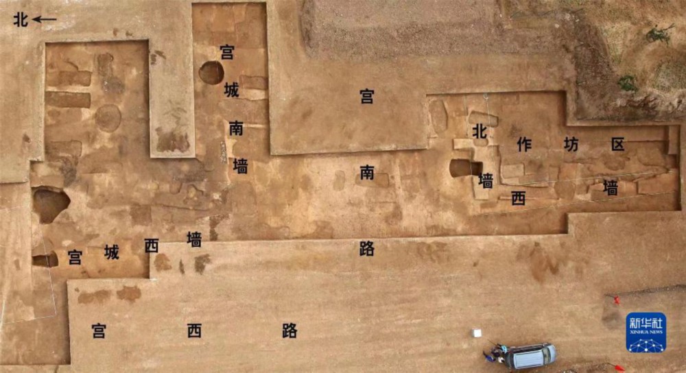 河南偃师二里头都邑8号基址、宫城西南与作坊区西北部航拍(资料照片)。新华社发(国家文物局供图)