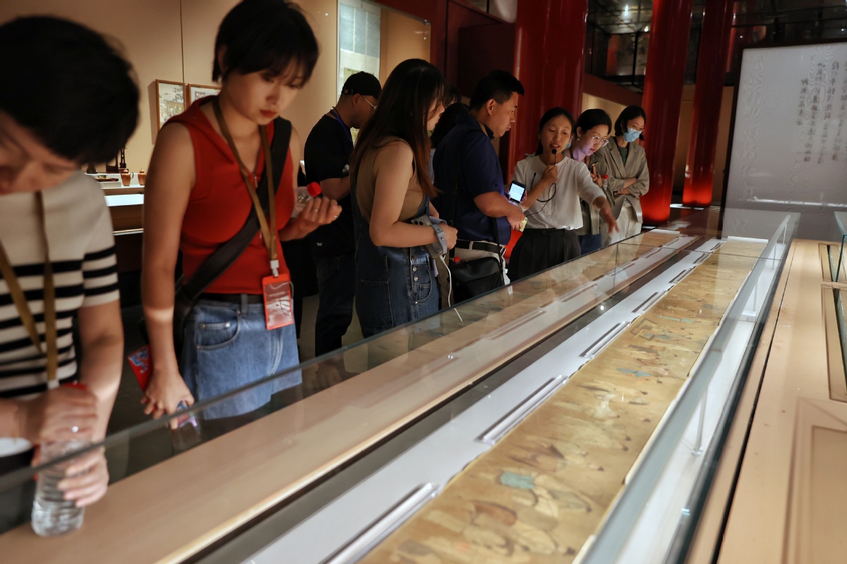 8月31日,参观者在欣赏佚名绘《春宴图卷》。中国日报记者姜东摄