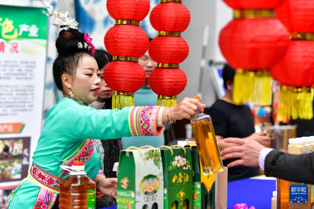 12月15日,在贵州省黎平县肇兴侗寨,侗族群众在侗年年货集市销售地方特产。新华社记者 杨文斌 摄